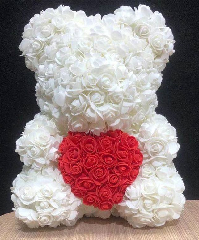 White rose bear with red heart